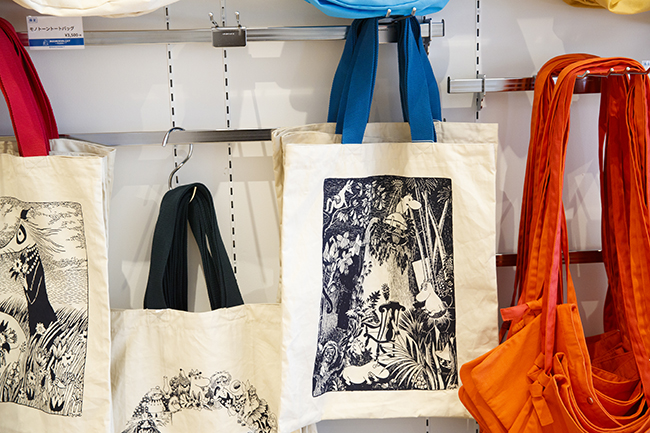 そもそもムーミングッズはデザインや機能的にもハイセンス、ハイクオリティなものが多くたくさんのファンが存在しますが、ここにはムーミンバレーパークでしか手に入らないグッズもたっぷり。パークオリジナルのアラビア社製マグカップや、手ぬぐいブランド「かまわぬ」とコラボレーションした美しいオリジナル手ぬぐい、お土産にぴったりなセンスのいいスイーツ、そしてひとめ見たら誰もがぎゅーっとしたくなるぬいぐるみなど、どれも可愛すぎて思わず目移りしてしまいます。