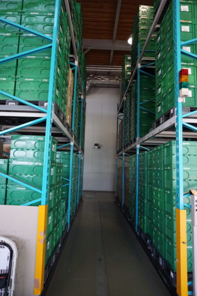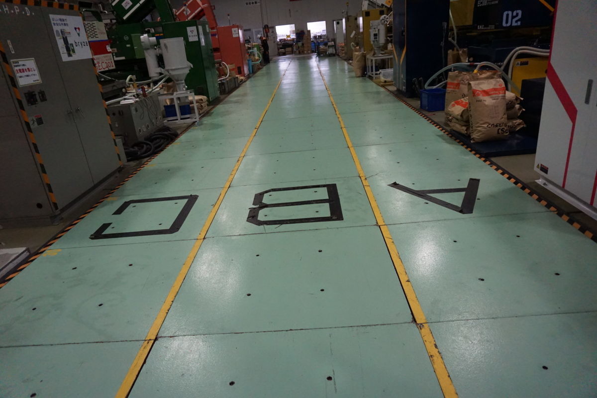 岸山 成形機で出来上がった各パーツが1パレットにたまると、自動搬送機が近くまで来てくれ、それを持ってパレットエリアへと運んでくれます。それまではある種、人力でやっていた作業を、効率化させるために自動搬送機を導入しました。