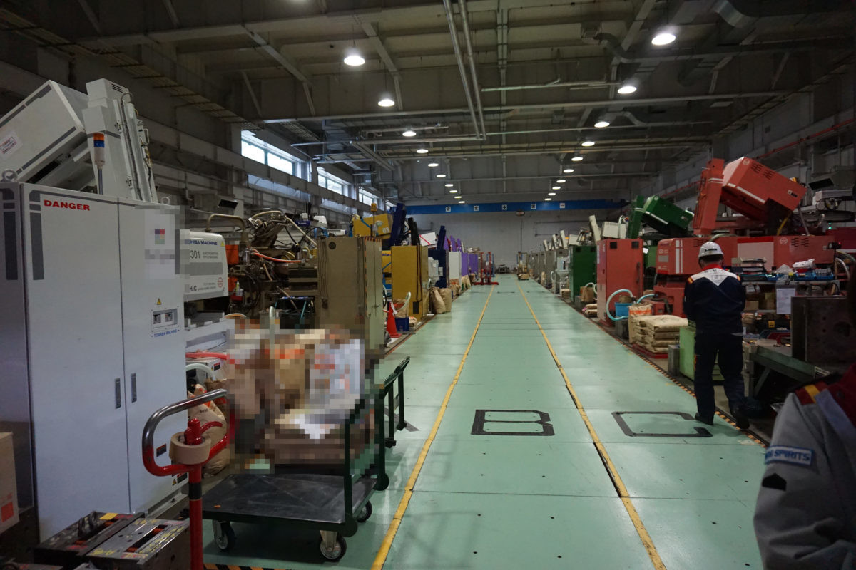 岸山 ブリッジにシャッターが降りたりする意味では、確かにホワイトベースのような感じですね。この先にあるのが成形工場になります。
