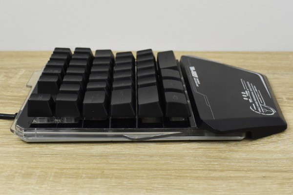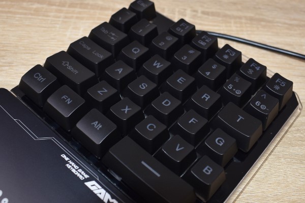 キーの数は35個で、ゲーマーにはうれしい「マクロ記録」機能も搭載。良く使う操作を「F1」「F2」ボタンに保存しておき、呼び出すことが可能です。それぞれのキーが多少大きめの作りなので、操作性も抜群。少し重めの打鍵感が心地よく、「押してる実感」もばっちりでした。
