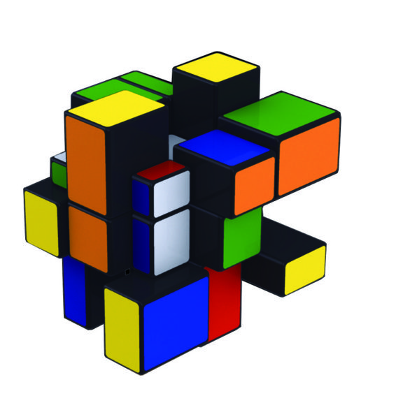 飯田 「ルービックカラーブロックス3×3」は、各マスの幅が1つずつ違うので、それぞれの幅は必ず、それがハマる位置にしか来ません。なので、3×3×3に比べれば確かに難しくはありますね。