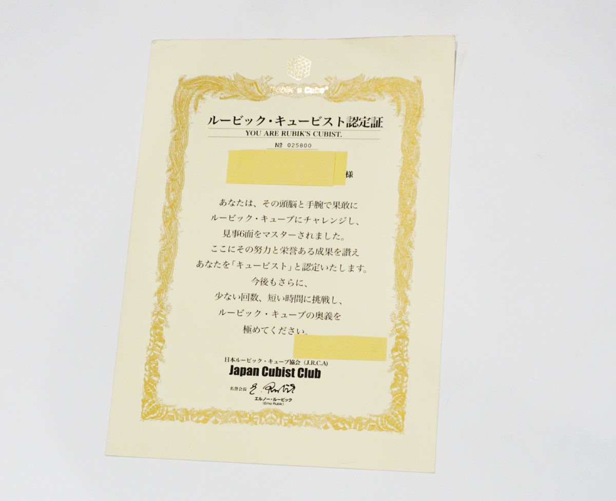 ーー最初の発売時、「ルービックキュービスト認定証」というものをクラスメイトが持っていて、羨ましかったことがあります。これは今でもありますか?