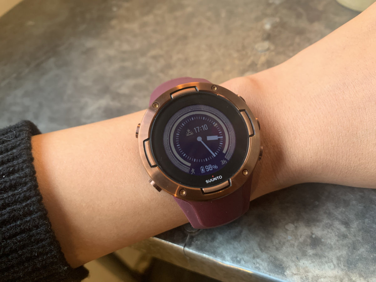 そんな私が重視しているのは、機能性よりも操作のしやすさとデザイン。この「SUUNTO 5」はそのどちらも兼ね備えているので最近のお気に入りです。私が使っているカラーはBurgundy Copper。バーガンディーのベルトにブロンズカラーのフレームが渋くてかっこいい!と一目惚れ。説明書を読まなくても扱えるくらいに操作も簡単です。GPSモードでバッテリーが最大40時間続くことや、大画面で見やすいところも魅力。そうなるとやっぱり断然新しい物の方がいいですよね。前言撤回です!