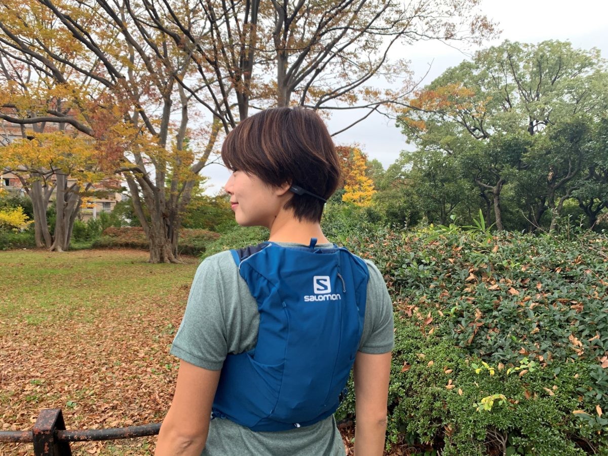 トレイルランナーに人気のSalomon。私が初めてトレランにチャレンジしたときに、ランニング用バックパックの快適さを知ってしまい……ロードでも、大した荷物がなくても、バックパックを背負って走ります。「AdvancedSkin 8 SET W」は女性に特化したデザインで、胸を圧迫しない作りになってます。そして、なによりポケットが沢山あるのが魅力。フロント部分だけでも収納箇所が多いので、走りながらストレスなく中身を取り出せます。