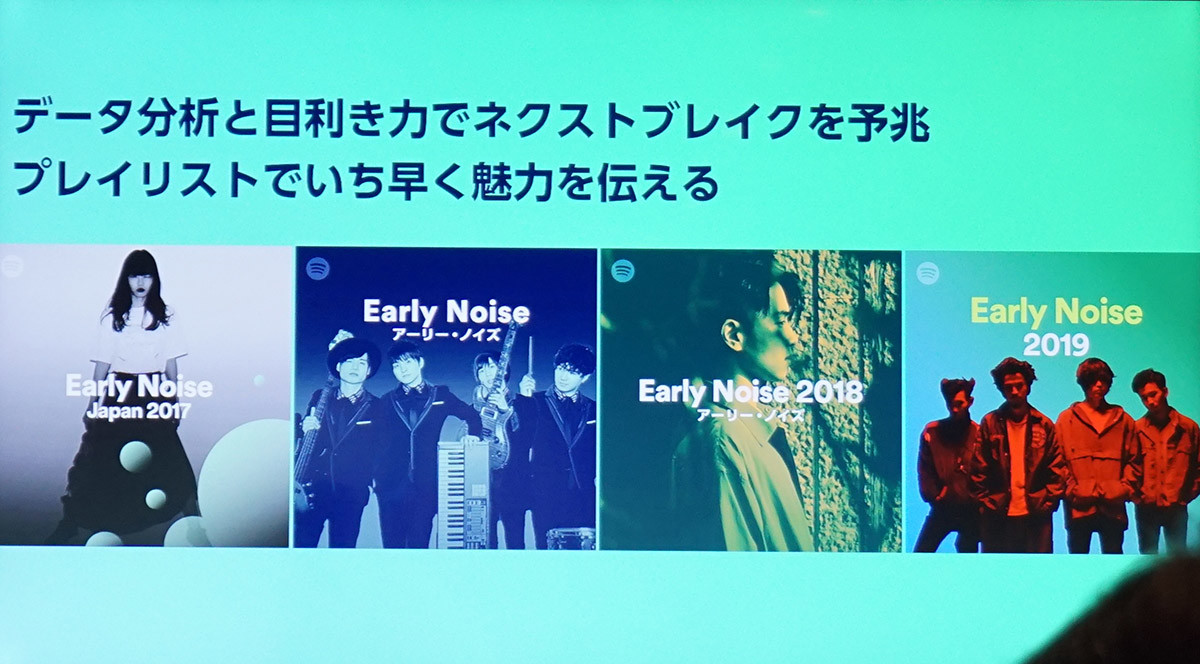 「Early Noise」は、Spotifyがデータ分析と目利きで選んだ新人アーティストを発掘し、プレイリスト紹介やライブ活動などを通じて応援していくプログラム。これまでに「あいみょん」や「Official髭男dism」をはじめとする様々なアーティストが選出され、これを機に次のステージへステップアップしてきました。