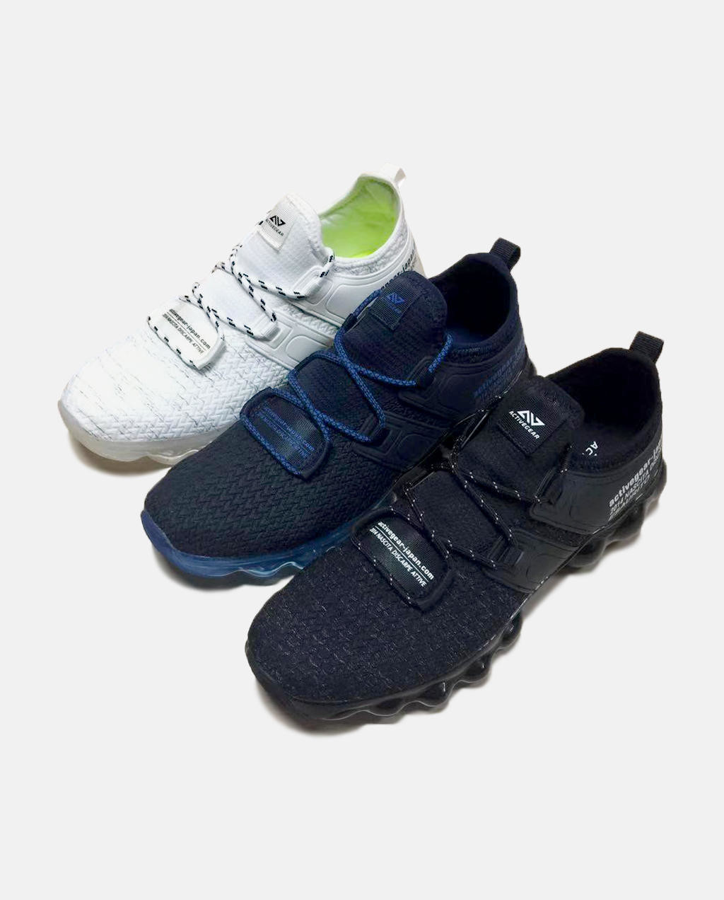 ACTIVEGEARでは、FOOTGEARシリーズというシューズラインがあり、いずれも2990円(税別)~3990円(税別)までと、まず価格が手ごろ。その上でエアクッションを採用したり、アウトソールにこだわったり、通気性の良い素材を用いたりと、ユーザーにとって「何を重視したいか」のニーズに対応するラインナップで、選びやすく使いやすいのが魅力です。