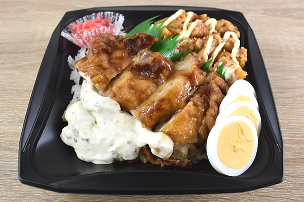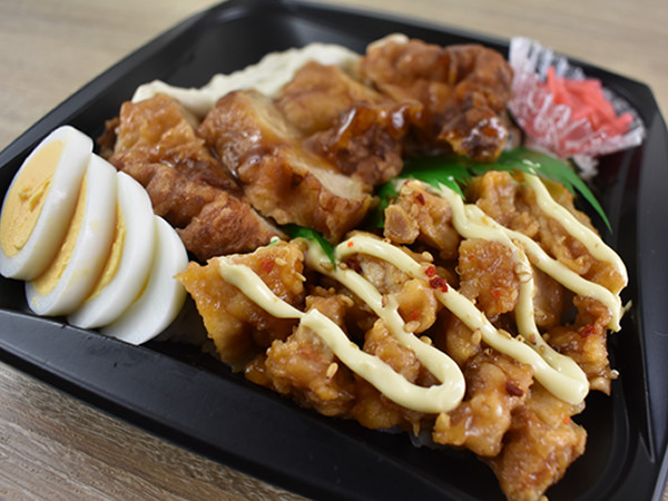 2種類の唐揚が盛りつけられたお弁当に一目惚れする人が続出中で、ネット上からは「ほぼ肉しか入ってない! 最高かよ」「これは贅沢すぎる。チキン南蛮がめちゃくちゃ美味しそう」といった声が。一体どのような味を堪能できるのでしょうか?