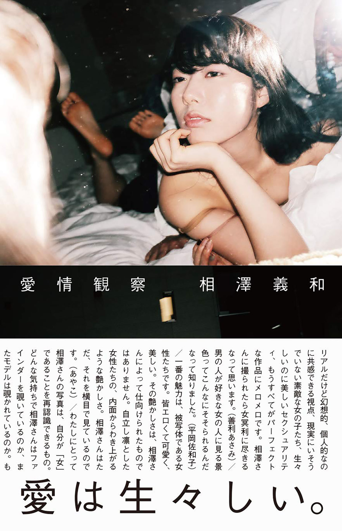 続いて、相澤義和さん。『愛情観察』という写真集を出されているのですが、最初に100冊入荷したのですが、もう残り1冊しかないという。それくらいうちのお店では人気がある写真集です。内容はエロティックなんですけど、買って行かれる方は女性が多いんですよ。これは推測ですけど、男性が女性のどんなところにエロとか愛を感じられるか……というところが知られるという意味で、女性ファンが多いようです。