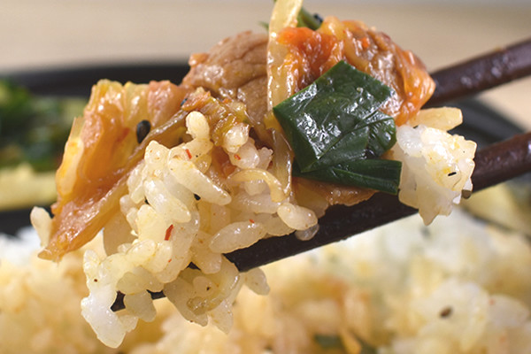 食べやすい大きさにカットされた豚肉を味見すると、ジューシーな風味が口の中を満たします。キャベツや玉ねぎは咀嚼するたびに甘みが加わり、豚キムチが一層深みのある味わいに。ボイルされた“にら”も入っているため、パワーチャージしたい時におススメです。