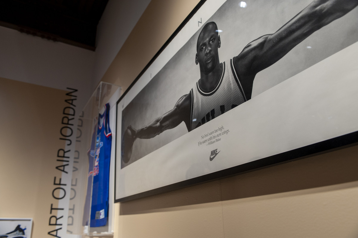ジョーダンのお宝アイテムも展示。バスケファン、バスケシューズファンにはたまらない空間だった