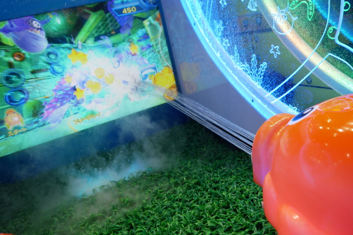 このように、エレメカは一周回ってアナログ路線に戻ってきた、とも考えられますが、水やピンポン玉のように“形のある物”をモニターの敵に向かって撃ってやっつけるのは、一見アナログだけれども、デジタルな技術が活用されていて、“アナログ=リアル”を感じられ、ゲームのデジタルな世界観と現実(リアル)が融合しつつあるのではないかと思います! ボードゲームや文房具では、アナログとデジタルの融合が近年増加しつつあるようですが、アーケードゲーム、ことエレメカに関しても同様の傾向が強く見られたので、今年のトレンドは「アナログへの回帰、即ちリアルとの融合」と言えそうです!