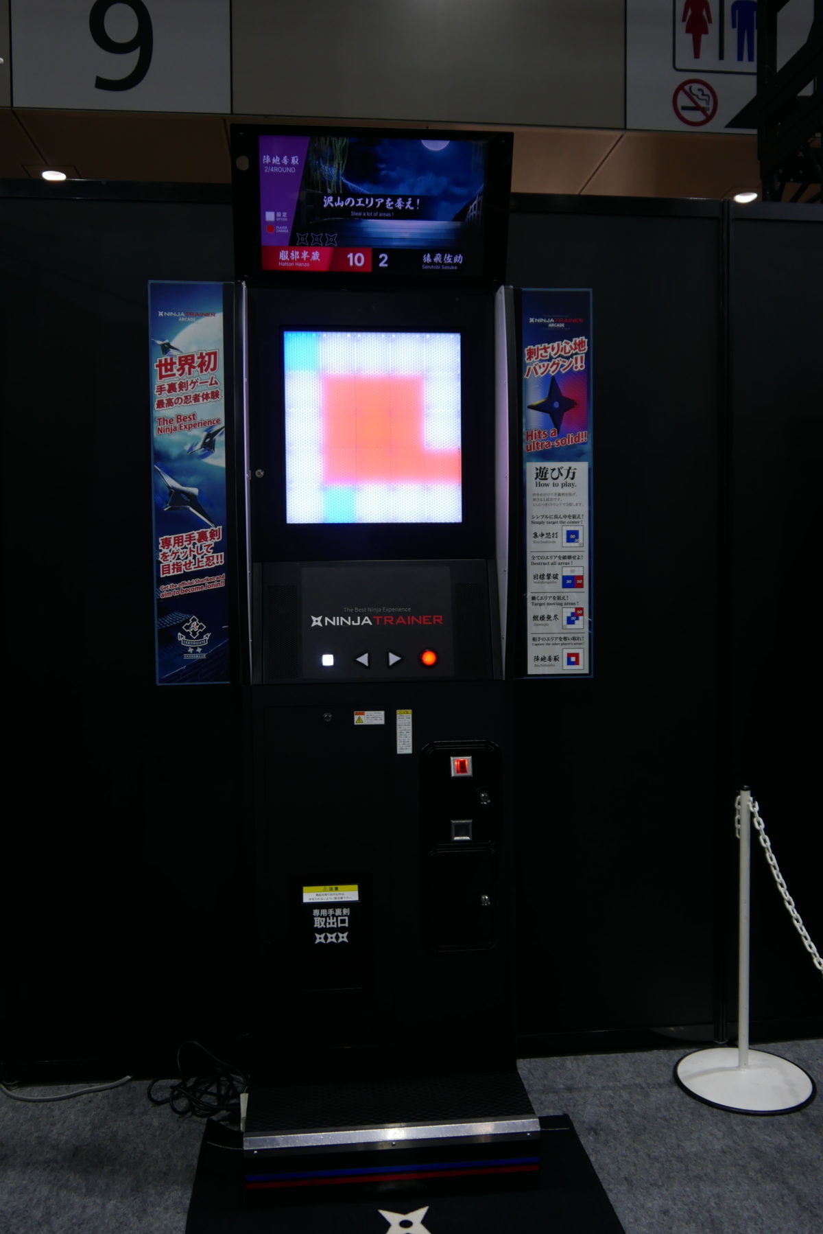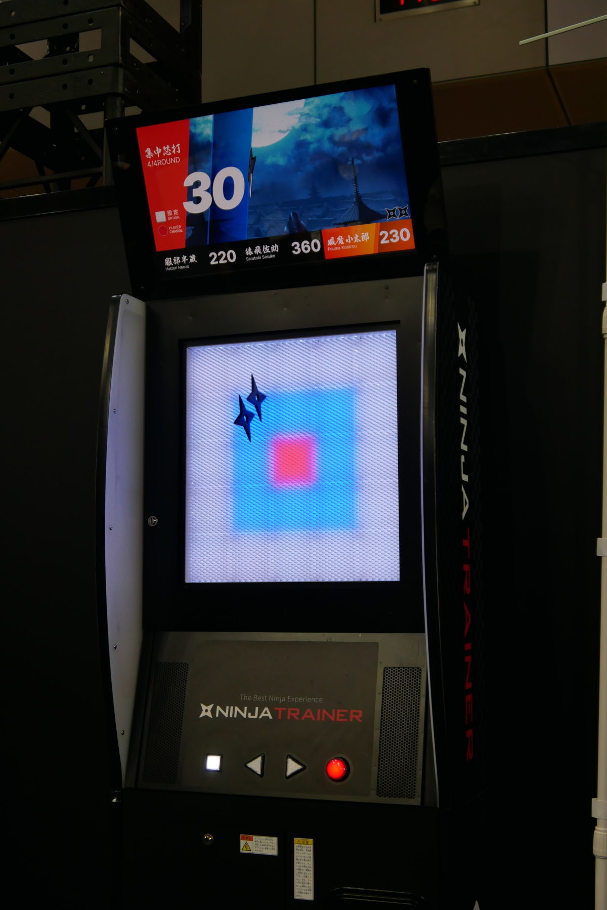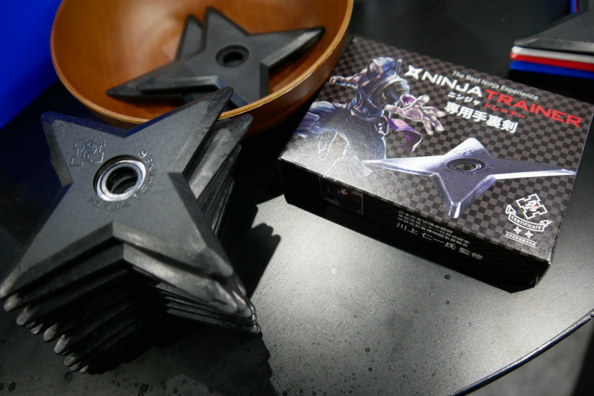 セガグループのダーツライブ社が開発。「日本忍者協議会」公認。ダーツマシン「ダーツライブ」をベースに、手裏剣を投げて、本格的な“忍者体験”を楽しめるゲームです。手裏剣はゴムのような柔らかい素材で、手裏剣が刺さる的の部分はソフトな剣山ブロックになっています。的の中心を狙う「集中芯打」、動く的を狙う「縦横無尽」、指定された的を3投で打ち抜く「目標撃破」、2人対戦専用陣取りゲーム「陣地奪取」の4種類のモードで、“忍者”になりきれます!