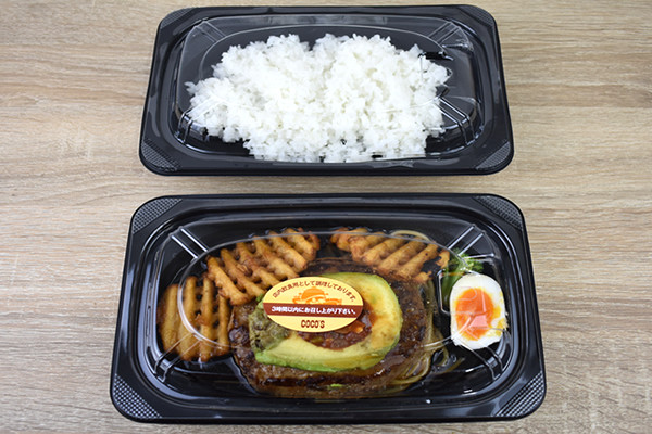 “包み焼きハンバーグ”などが有名なファミリーレストラン「COCO’S」。他にも様々なハンバーグメニューを提供していますが、今回は新商品の「フレッシュアボカドハンバーグ(ライス付き)」(1069円/税込)を購入してきました。