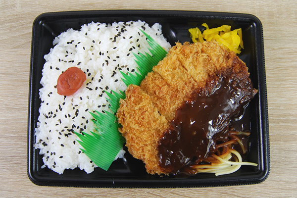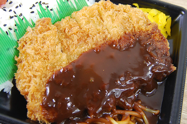 まずはお弁当の中身をチェック。大きな味噌カツの他にも、スパゲティ、ご飯、漬物などが入っています。とにかく味噌カツは存在感が大きく、食欲をそそるこうばしい香りを漂わせていました。ご飯がすぐになくなりそうですが、よく見てみると結構大盛り。ちょこんと梅干しがトッピングされているのも、地味にうれしいポイントです。