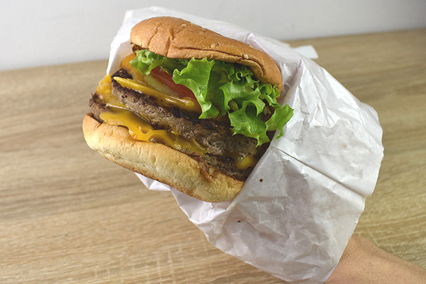 勢いよくバーガーにかぶりつくと、口の中がこうばしさで溢れ返りました。とにかくパティが食べ応えバツグンで、噛みしめると肉汁がジュワリ。またこしょうの味つけも際立っているため、肉の旨味とパンチを同時に楽しめます。1枚1枚のパティがぶ厚いので、なんだかジューシーなハンバーグを食べている気分に…。