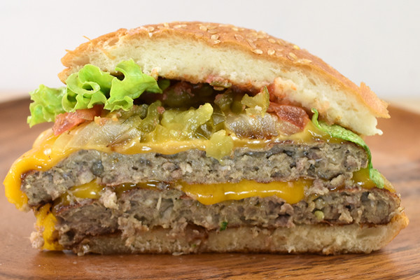 “大人がくつろげるバーガーカフェ”として親しまれるフレッシュネスバーガー。普通サイズのハンバーガーはもちろん、特大サイズのメニューも多数取り揃えています。今回ご紹介するのは、約113gのパティを2枚サンドした「クラシックWWバーガー」(900円/税込)。