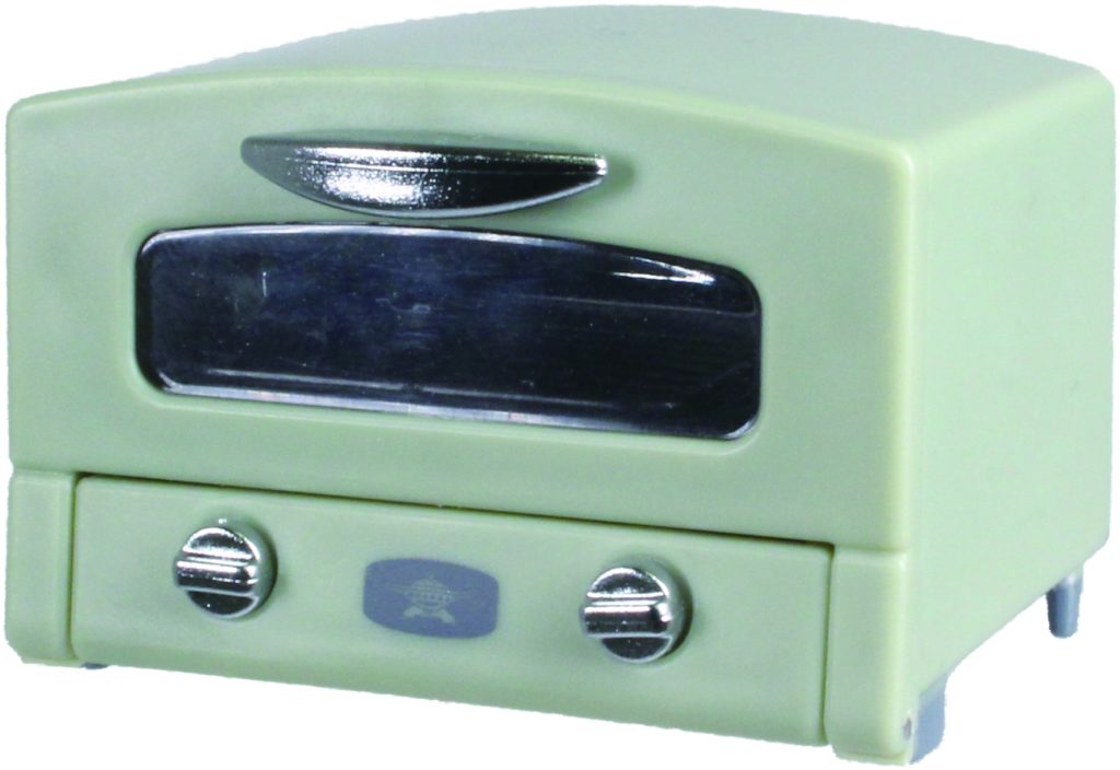 第2弾となる今回は、アラジンの人気調理家電「グラファイトトースター」「グラファイトグリラー」を完全再現したミニチュアフィギュア全5種。グラファイトトースターは、扉の開閉や受け皿の取り外し、つまみを回すことが可能な仕様で、カラーはグリーン、ホワイト、ブラックの3色。グラファイトグリラーはトレイの取り外し、つまみを回すことが可能な仕様で、グリーンとホワイトの2色展開です。
