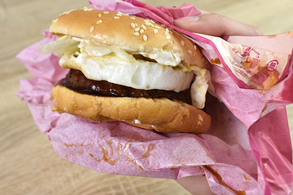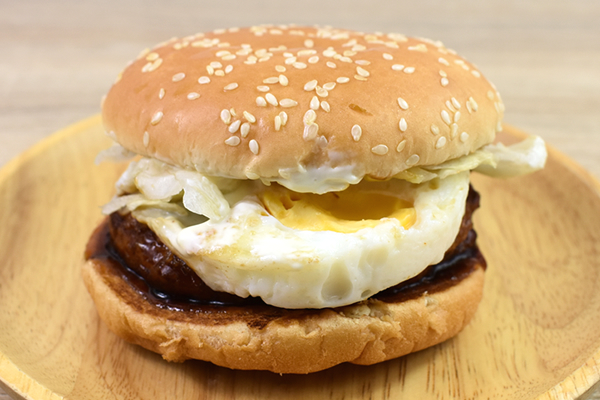 もちろん、とんかつパティは卵と相性バツグン! 卵の甘みが肉の旨味と絡み合い、なめらかな口当たりがプラスされます。とんかつパティと卵がぶ厚くて食べ応えも満点なので、食べる時は豪快にかぶりつくのがおススメ。スイートレモンソースの甘酸っぱいテイストも、とんかつパティや卵と絶妙にマッチしていました。