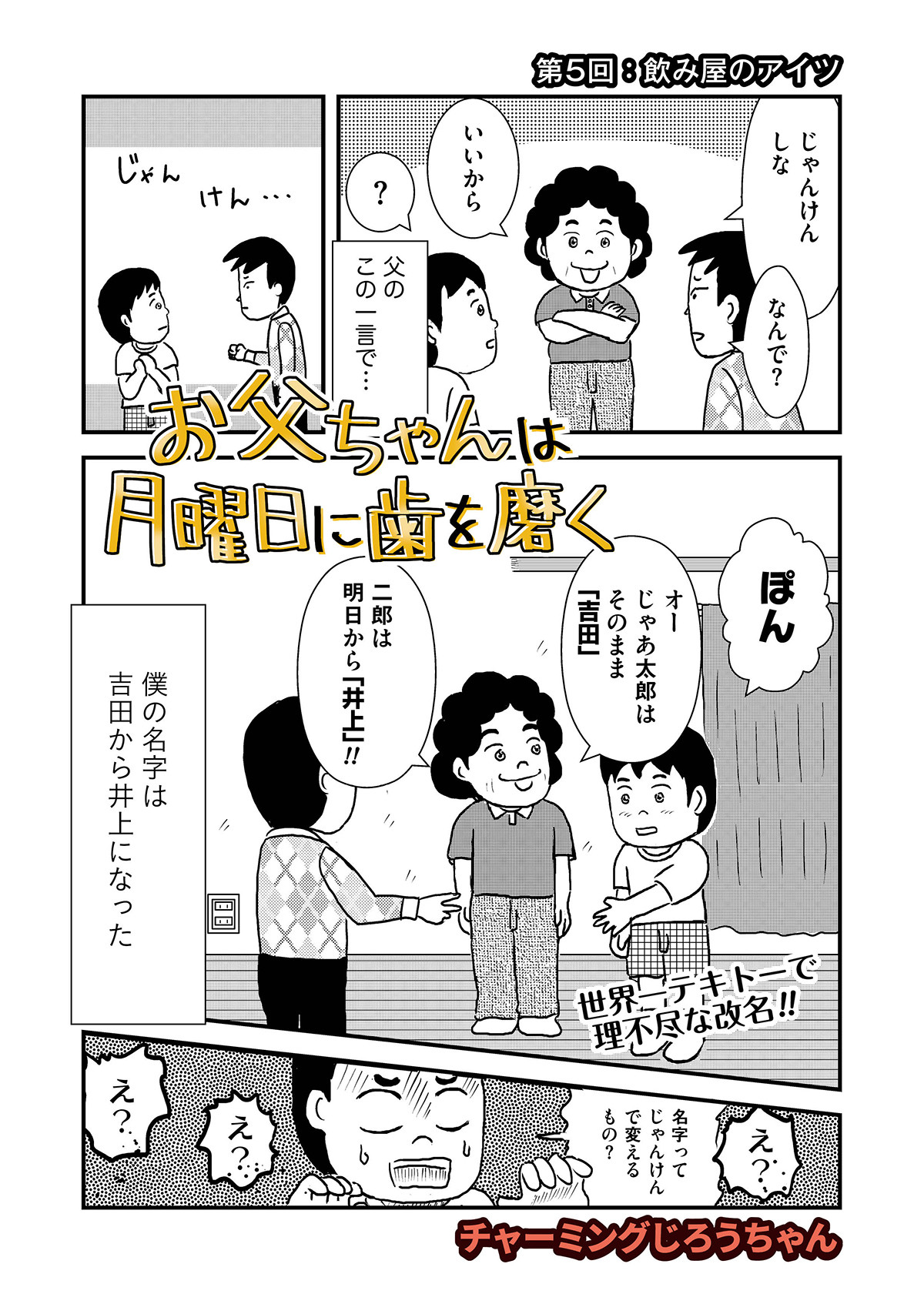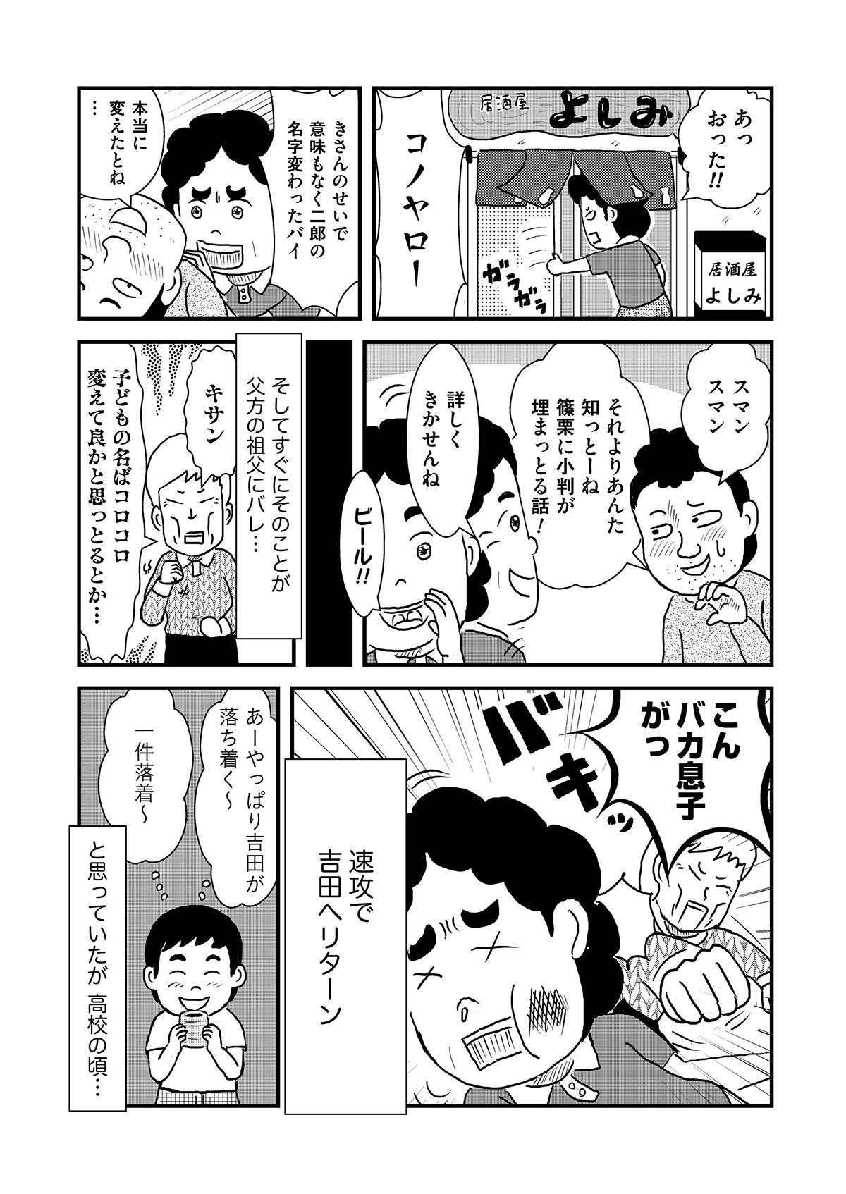 「アイツ」もひどいけど、じゃんけんで名字を変えちゃうお父ちゃんもなかなかです。名字もひどいエピソードですが、「二郎」という下の名前にも色々思いがあるようで。今回はそんなお話。
