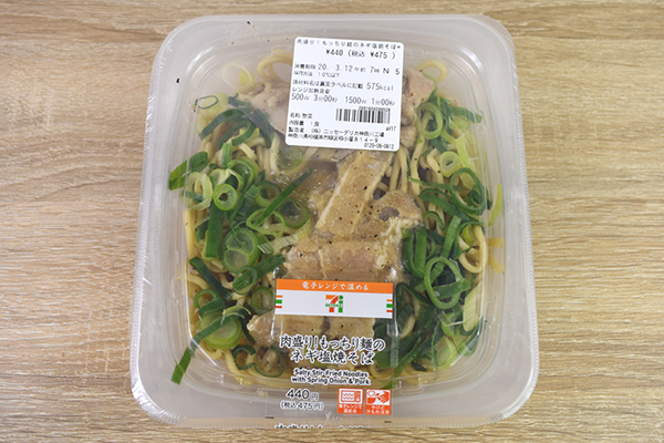炒めた中華麺と一緒に肉などを食べられる“焼そば”。ソースを絡めたものが一般的ですが、塩などでシンプルに味つけした“塩焼そば”が好きな人も多いですよね。そこで今回は、セブン-イレブンで発売中の「肉盛り! もっちり麺のネギ塩焼そば」(取材時価格:475円/税込)をピックアップ。
