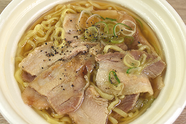 熟成されたちぢれ麺は、こだわりのダブルスープと見事にマッチ。“コシ”がしっかり残っているおかげで、思っていた以上にモチモチとした食感です。メインのチャーシューは咀嚼した瞬間、ジューシーな肉汁が口の中を満たしました。歯ざわりがとっても柔らかく、“パサパサ”に感じることもありません。コンビニのラーメンですが、決してお店に負けないクオリティーだと思います。
