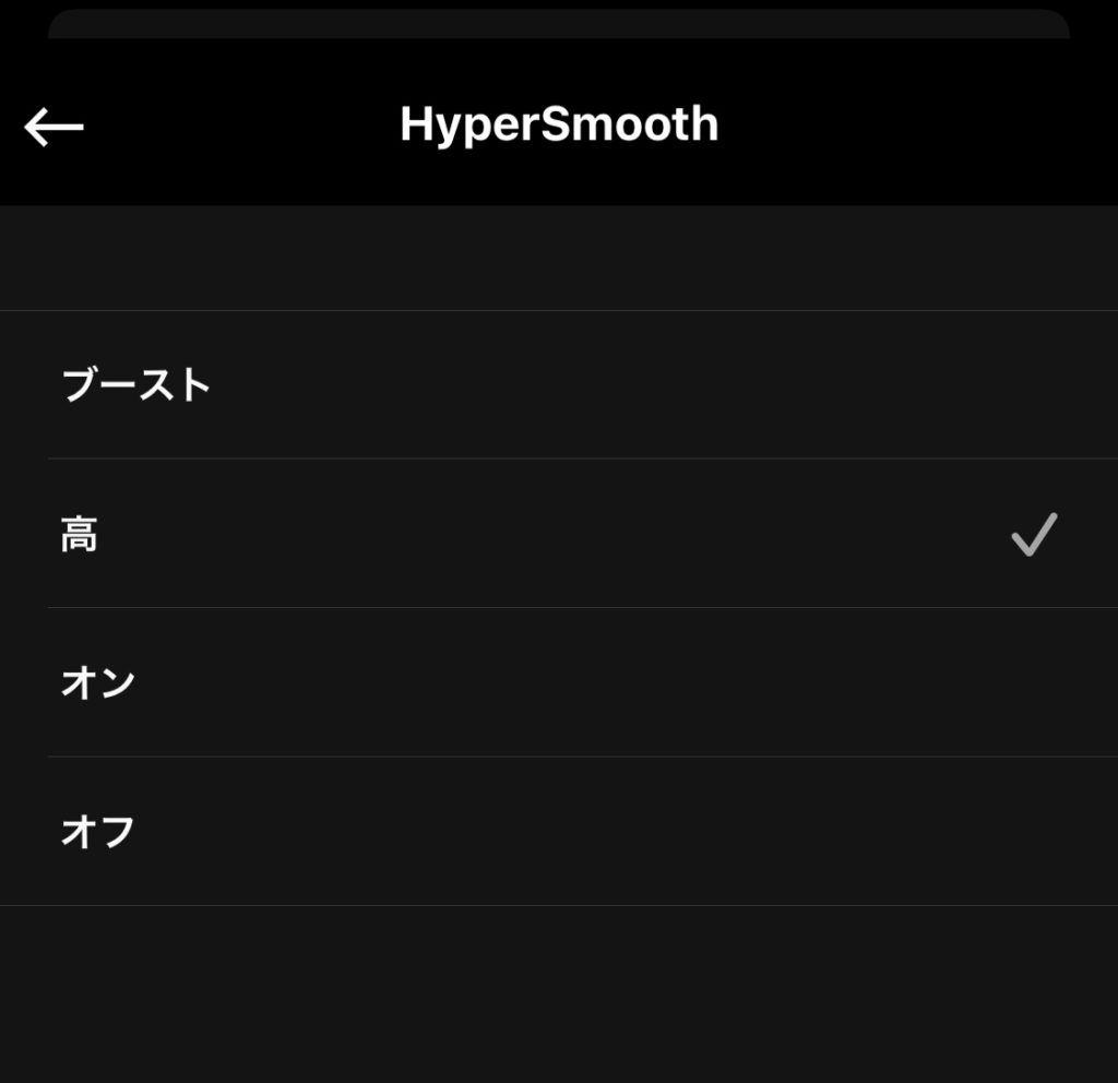 HERO8はGoPro史上、最もブレに強いカメラとのことで、HyperSmooth機能もHyperSmooth 2.0に進化。ポイントとしてはHyperSmoothの効果を、「オフ」「オン」「高」「ブースト」の4段階から選べるようになりました。いままでのHyperSmoothは「オン」「オフ」しかなく、安定化を優先すると解像度やフレームレートが限られてしまいましたが、HyperSmooth 2.0では基本すべての解像度・フレームレートで効果を体感が可能。しかし、一番安定化の効果が高い「ブースト」では画角が一回り小さくなりますのでご注意ください。
