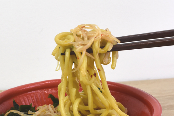 弾力がある“まぜ麺”専用の太麺に、かつおや豚肉の旨味を加えた“タレ”を組み合わせた商品です。実食した人たちからは、「チルド麺とは思えないほどクオリティーが高い。麺の噛みごたえが最高だね!」「素材の旨味が凝縮されたタレがめちゃくちゃ美味しかった」などの声が続出。それでは電子レンジで温めて、実際に味わっていきます。