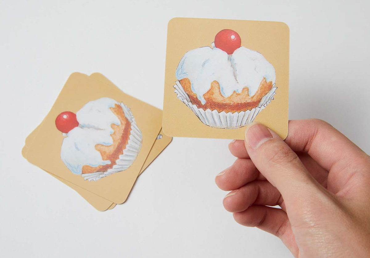 抜いたカードを戻す際、他プレイヤーに絵柄がバレているため、取られないように奥へ差し込んだりすることで屋根のバランスが崩れていくのが面白い。お菓子のイラストがかわいく、子どもでも楽しめます!