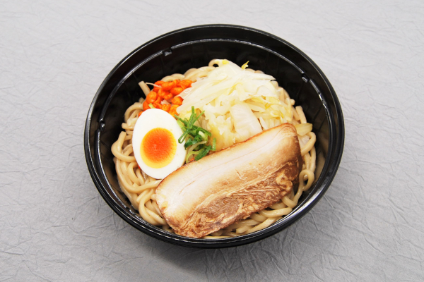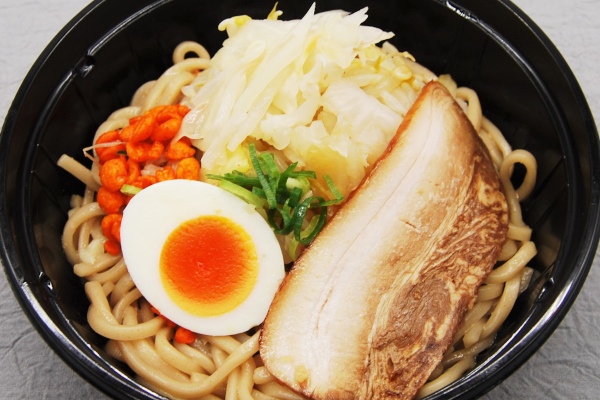 醤油味のスープはにんにくの風味がかなり強く、想像よりも味が濃い印象。冷たいにもかかわらず、“濃いラーメン”の味をしっかりと再現しています。ゆでられたキャベツやもやしの“シャキッ”とした食感が心地よく、もちもちの麺と絡み合って良いアクセントに。1日に必要な野菜が3分の1も摂れるので、野菜不足の人にはうれしいですね。