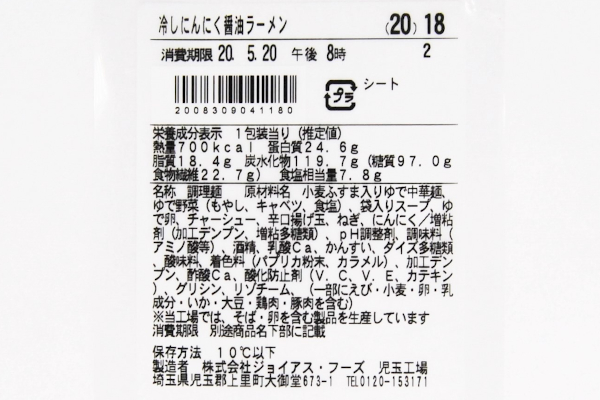 ●「冷しにんにく醤油ラーメン」(ファミリーマート)