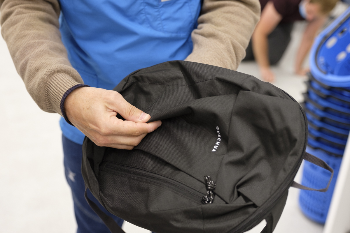 エリック まず、オリジナルブランド・QUECHUA(ケシュア)のNH100という390円のバックパックが象徴的です。裁断や縫い目をできるだけ少なくさせ、そのことを最優先にし、条件の中で最適と思われるデザインによって実現させたものです。4色を展開していますが、使い勝手はかなり良いと思います。ただ、正直この商品だけで利益を出すのはキツいです(苦笑)。