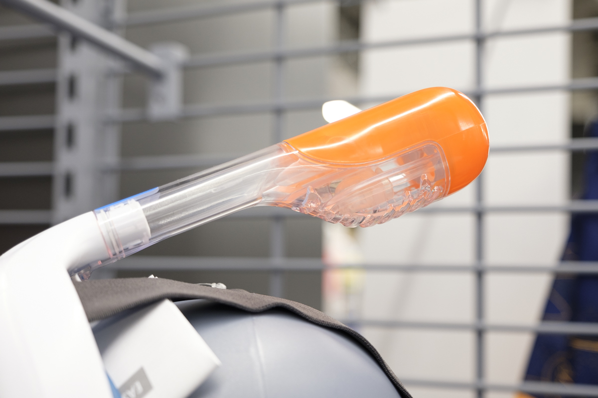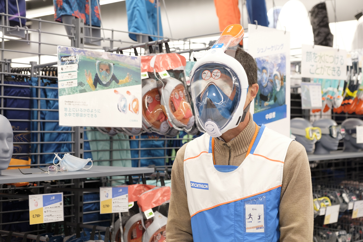 エリック そして次が「Easybreath」というシュノーケリングマスクです。シュノーケリングって、誰でも楽しめるスポーツですが、初心者はまず水が怖いですよね。それを解消するためにできたフルフェイスの商品で、鼻からも口からも息をしたまま水に潜ることができます。