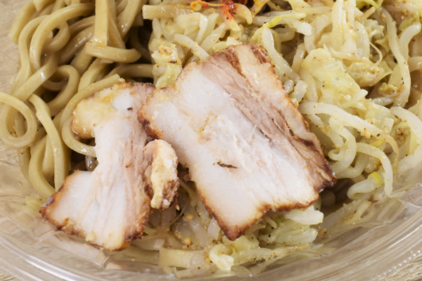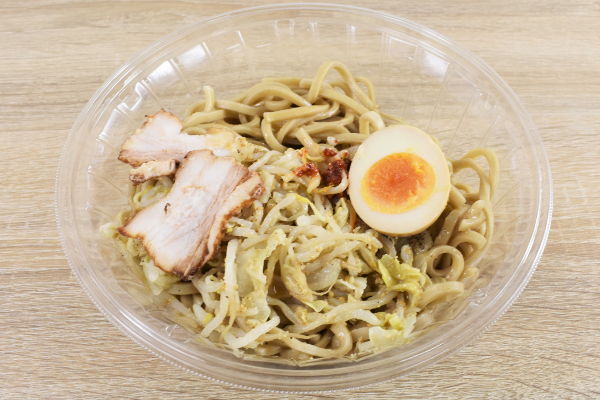 麺だけでインパクト抜群のテイストですが、もやしキャベツのシャキシャキ感がGOODなアクセントに。またトッピングのゆで卵は程よくマイルドな味わいで、濃厚なにんにく味と相性抜群です。にんにくの味に“くどさ”を感じた時は、ゆで卵で味変するのがおススメ。