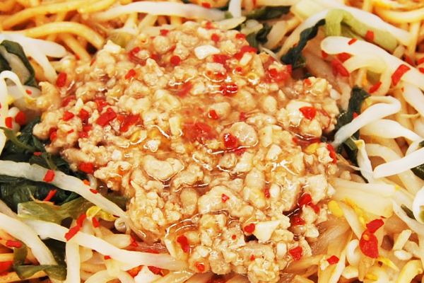 最初に“豆板醬入り醤油たれ”と麺をよく絡めてからひと口味見。もやしのシャキシャキとした食感と共にたれのこうばしいテイストが味わえました。さらに遅れて台湾ミンチの濃厚な“ジューシーさ”もプラス。既に旨味満点で納得の美味しさですが、噛めば噛むほど辛味も広がっていきます。額に汗をかくほど体が熱くなりましたが、パンチのある辛さのおかげで箸がとまりません。