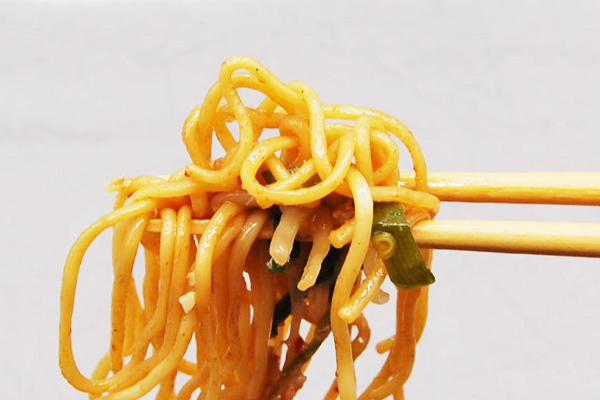 続けて焼そばを食べていると、酸味が効いたニラのテイストが。たれの辛味とも絶妙にマッチしており、味にアクセントを加えてくれます。レンチンした後にそのまま食べるのもいいですが、味をまんべんなく楽しみたい人はよくかき混ぜるのがおススメ。具材が中央にまとまっているため、ミックスしてから食べれば飽きのこない味を楽しめます。