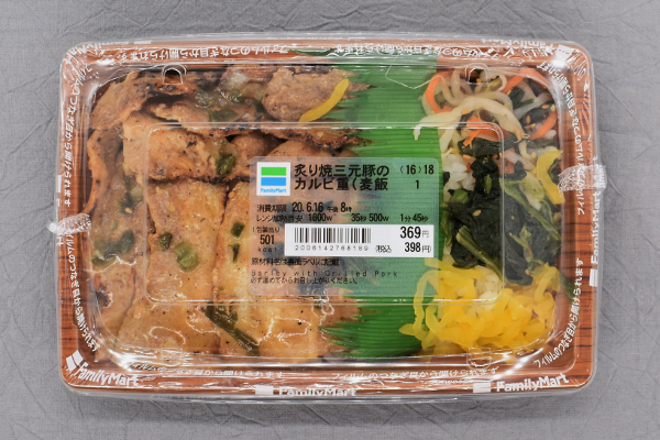 小腹が空いたときにちょうどいいボリューム感の小盛サイズ。できるなら量が少なくても、食べごたえのある具材をいただきたいですよね。そこで今回は、ファミリーマートから発売されている「炙り焼三元豚のカルビ重(麦飯)」(398円/税込)をピックアップ。小盛サイズのメニューですが、コンビニユーザーからは「多過ぎず少な過ぎないボリュームがイイね」「小盛だけど豚肉が超絶美味しい!」など好評の声が相次いでいます。ボリュームと味わいの両方に注目しながらレビューしていきましょう。