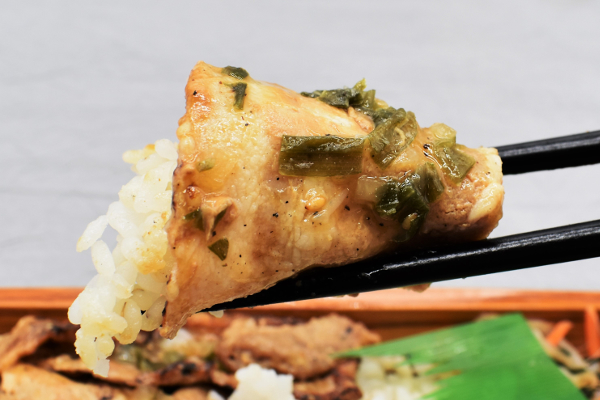 テイストは三元豚のジューシーさとたれの塩味が相性抜群で、文句なしの美味しさです。豚肉に散りばめられているネギと玉ねぎのシャキシャキとした歯ごたえもGOOD。続いてご飯を食べてみたところ、白飯に入った押麦のプチプチとした食感を楽しめました。塩だれはご飯と合う味なので、モリモリと食べ進められますよ。