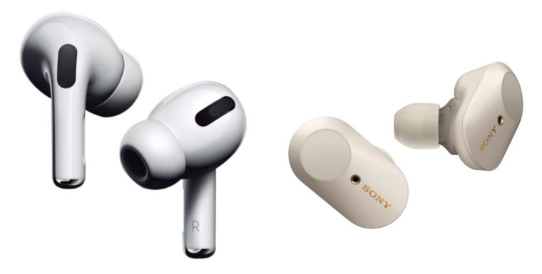 AirPods Pro(左)はあまりの売れ行きで一時は入手困難に。ソニー製品もハイレゾ級の高音質が楽しめるとして人気を集めている。