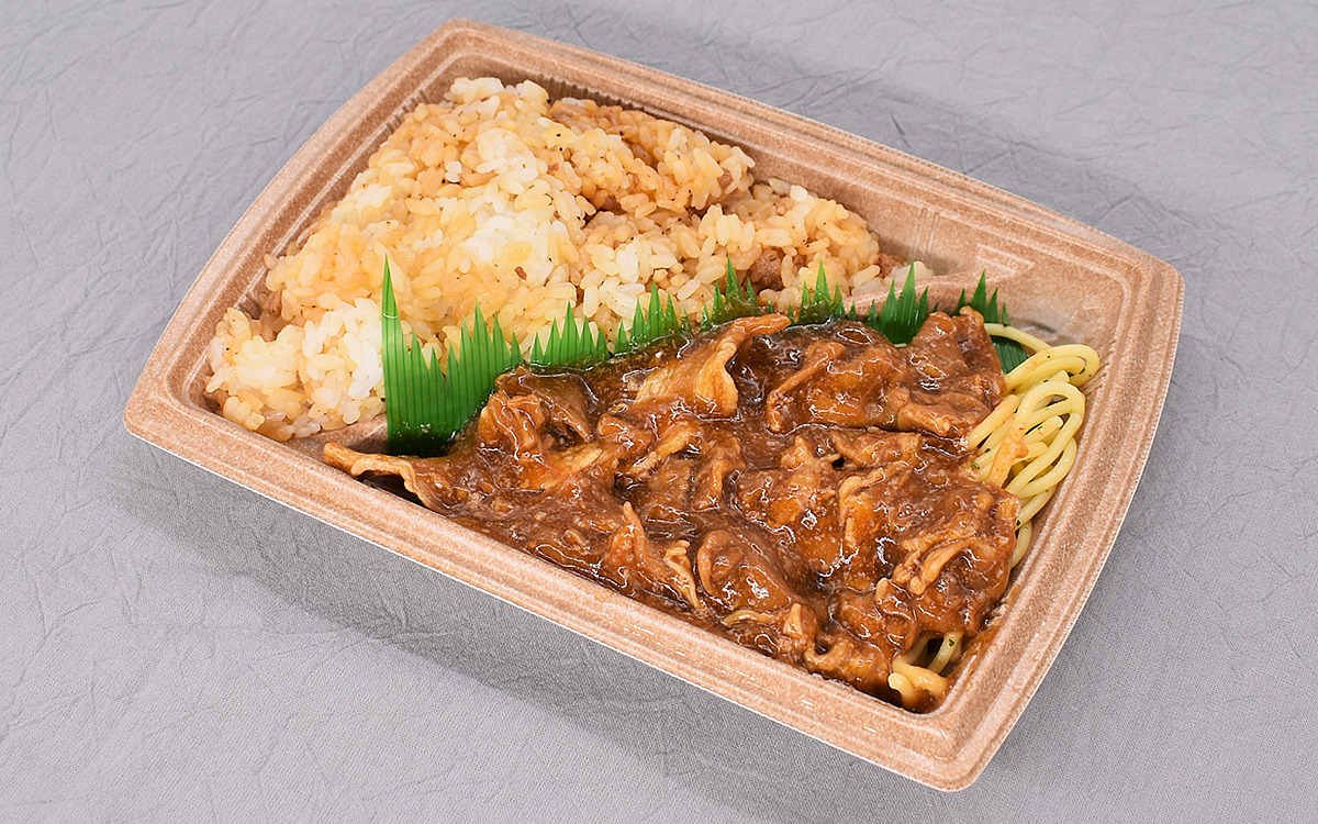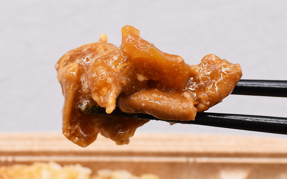 まずは容器一杯に敷き詰められているライスをすくい、口の中に運んでいきます。ご飯を噛みしめた途端、ペッパーのピリッとした風味が舌を刺激。後からやってくるバターのまろやかさと合わさり、バランスのとれた味わいです。ほのかに感じられる醤油の風味も程よいアクセントに。
