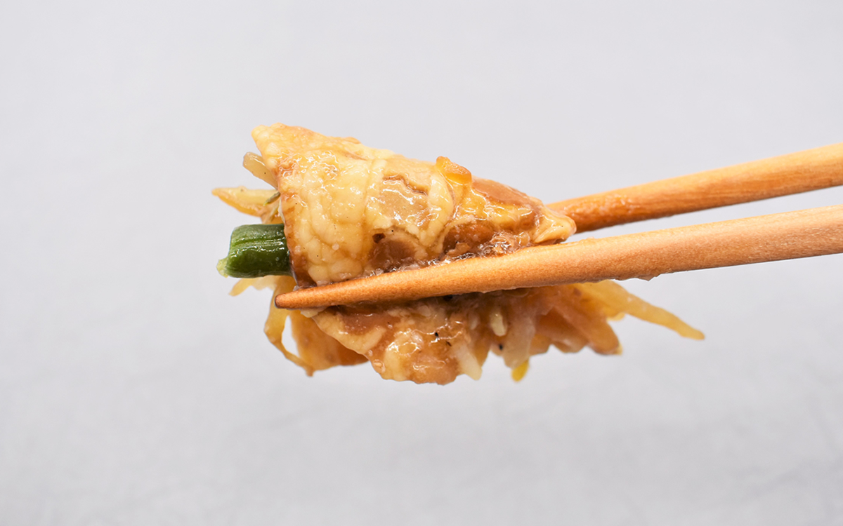 いざ、ご飯に具材をトッピングして実食開始。表面に焼き色がついた豚肉は、咀嚼するたびにこうばしい香りが鼻を抜けていきました。醤油の塩気が際立っているかと思いきや、とってもまろやかなテイストです。