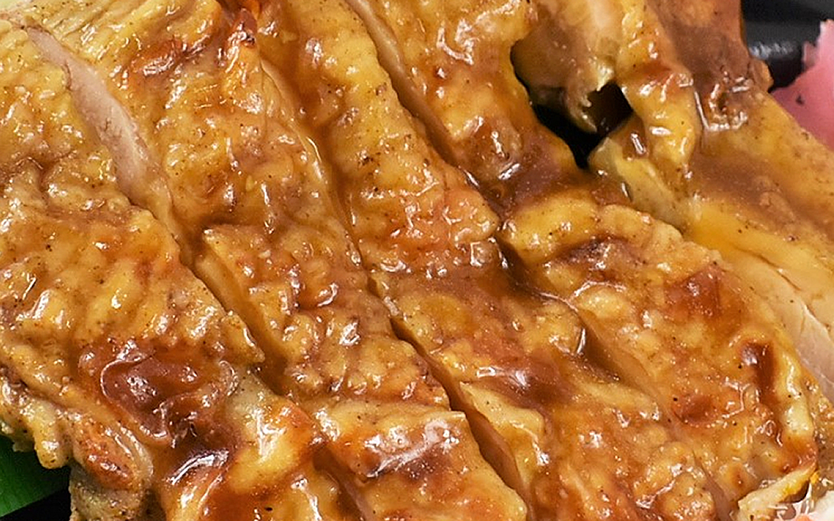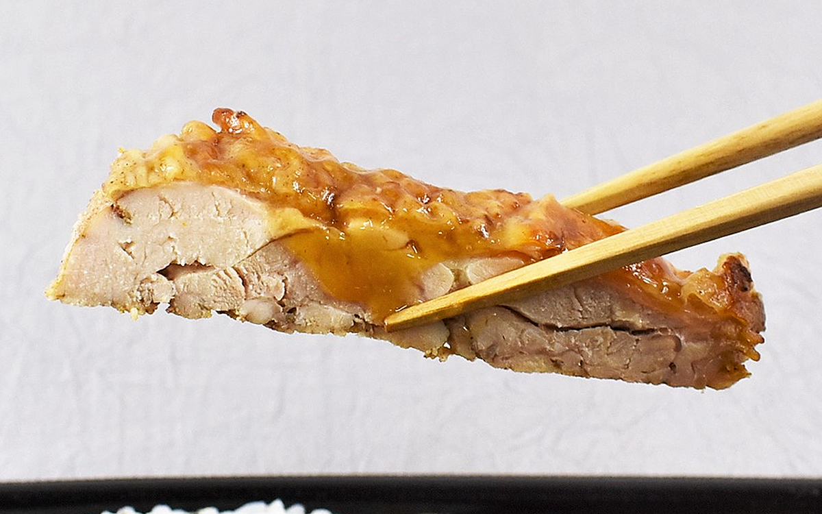 実際に試食してチキンステーキの味わいをチェック。鶏肉はかなりジューシーな口当たりで、噛みしめるとスパイスのこうばしい香りが口の中に広がります。舌をほどよく刺激する辛さもいい感じ。ピリッとした辛味が鶏肉を際立たせているため、ワンランクアップしたコク深いステーキに仕上がっていますよ。