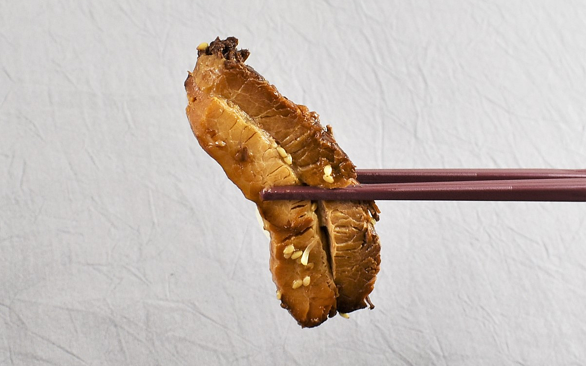 薄くスライスされた牛肉は、脂身と赤身のバランスが絶妙です。牛肉の風味もしっかりと残っており、驚くほどジューシーな味わい。中心まで味が染みこんだ角煮と一緒に味わえば、咀嚼するたびに肉汁が溢れ出してきます。