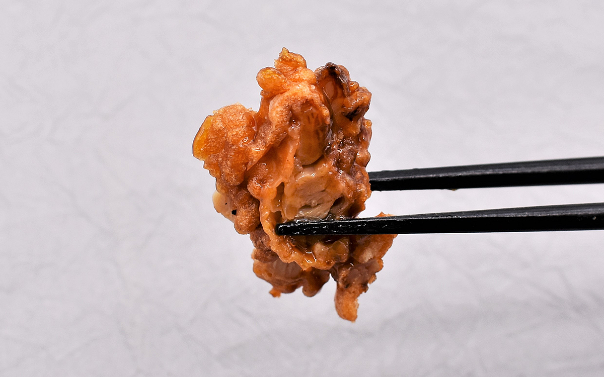 さっそくフタを開けてみると、“お出汁”のほのかな香りが。甘辛ダレにはかつおだしが使われているため、優しいかつおの風味が楽しめます。特に個人的にお気に入りなのは、甘辛ダレがたっぷり染みた唐揚げの衣。お肉に引けを取らないほどおいしく、タレが口に広がる感覚がやみつきになりそう。
