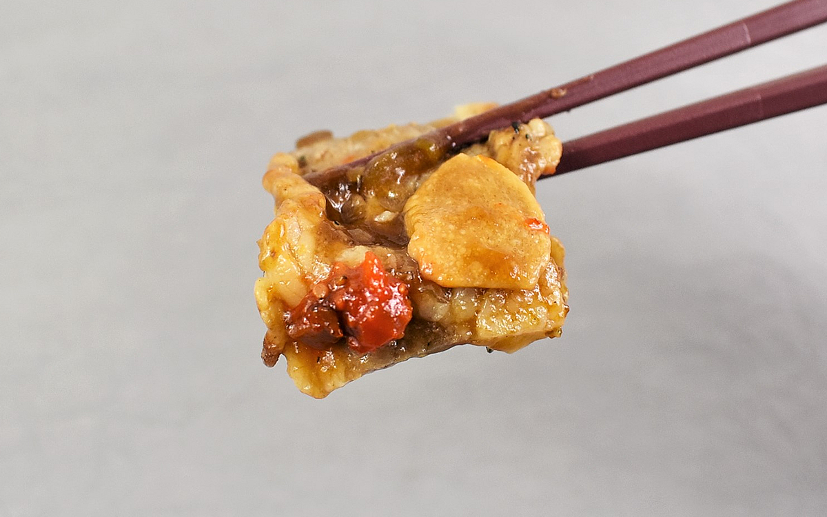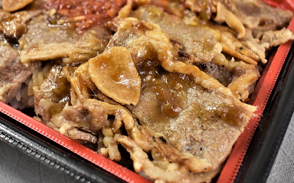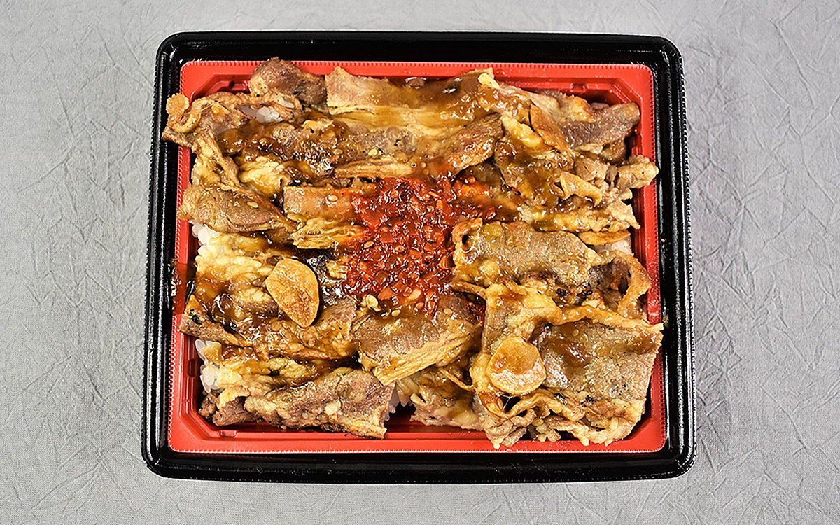 早速レンチンした弁当のフタを開けてみると、一瞬にして“ニンニク醤油たれ”のこうばしい香りが。KO必須のパワフルな香りで、一気に食欲がそそられました。ニンニク好きにはたまらない香りですが、“スメハラ”にならないように周りを確認してから実食した方がいいかも。