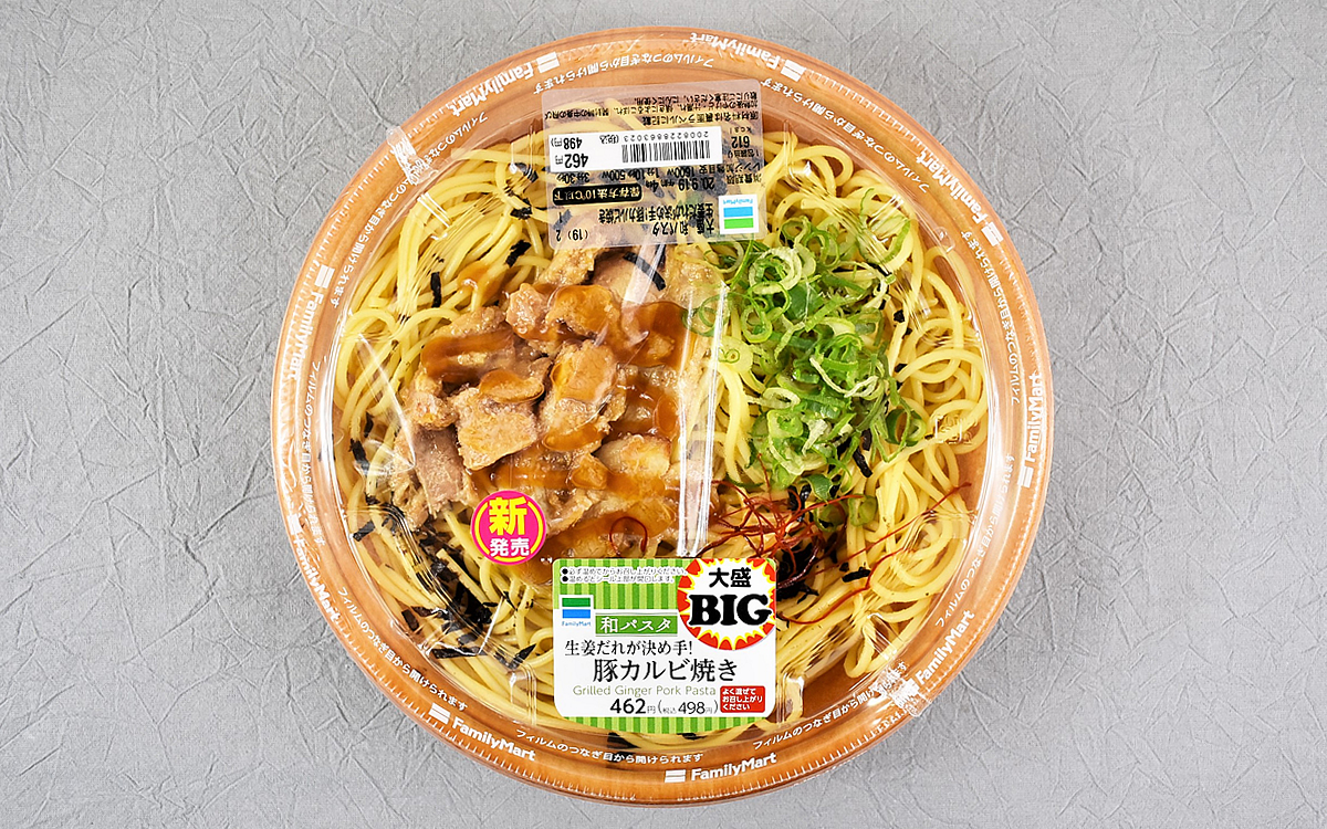 ご飯が進むおかずの代表格・生姜焼き。そんな生姜焼きをイメージした“豚カルビ焼き”とパスタをコラボさせたのが、ファミリーマートの「大盛 和パスタ生姜だれが決め手! 豚カルビ焼き」(498円/税込)です。「おいしいおかずはどんな主食と合わせてもおいしい」という精神が感じられる同商品ですが、その実力はいったい……?