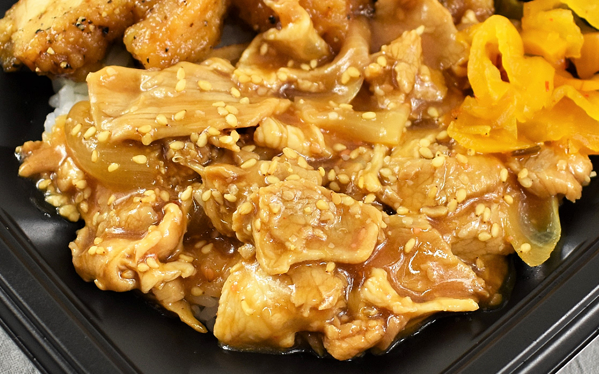 汗ばむほど刺激的な唐揚に反して、豚焼肉は甘辛い味わいに仕上がっています。スライスされた玉ねぎの甘みも加わり、予想以上にコク深いテイスト。にんにくの香りが見事に味を引き締めているので、スタミナをチャージしたい時にもうってつけです。