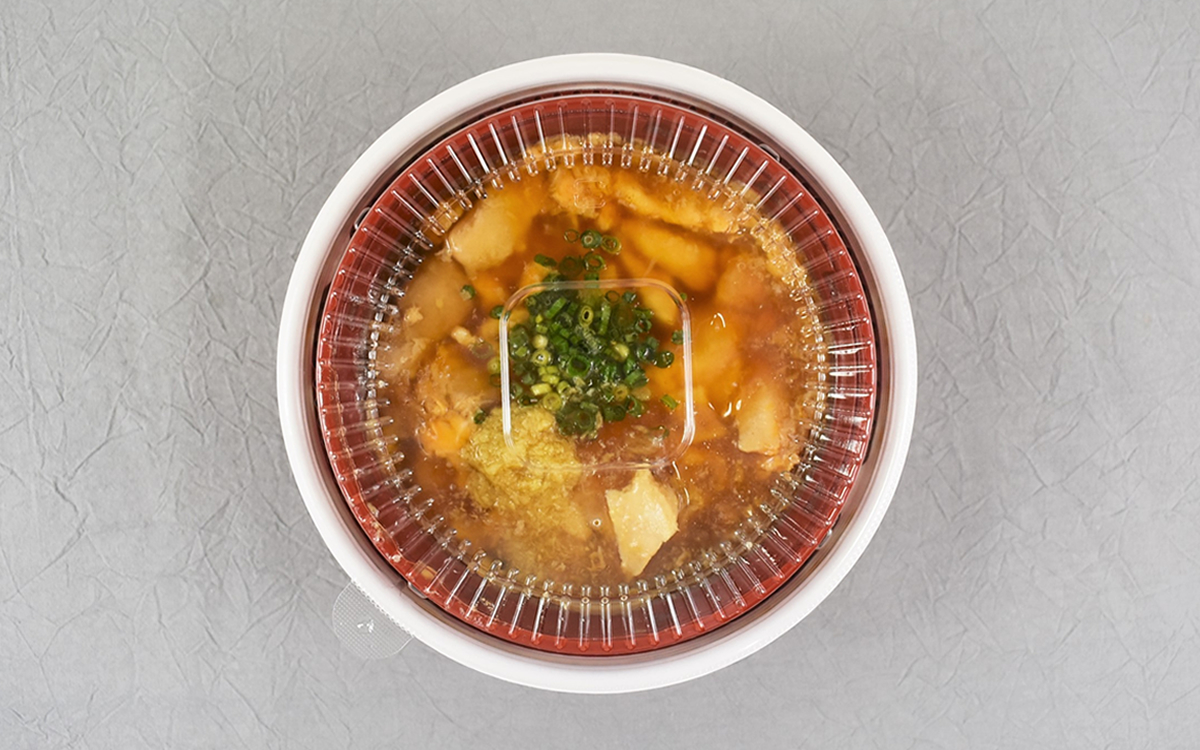 まずパッケージを開けてみると、こうばしい和風出汁の香りが。正直この香りだけで胃袋が刺激され、食欲がそそられます。さらにトロトロの餡には、さば節やいりこ、真昆布などから取った出汁を使用。加えて青ねぎや生姜がアクセントになっており、コクのある“京風あんかけ”が楽しめました。