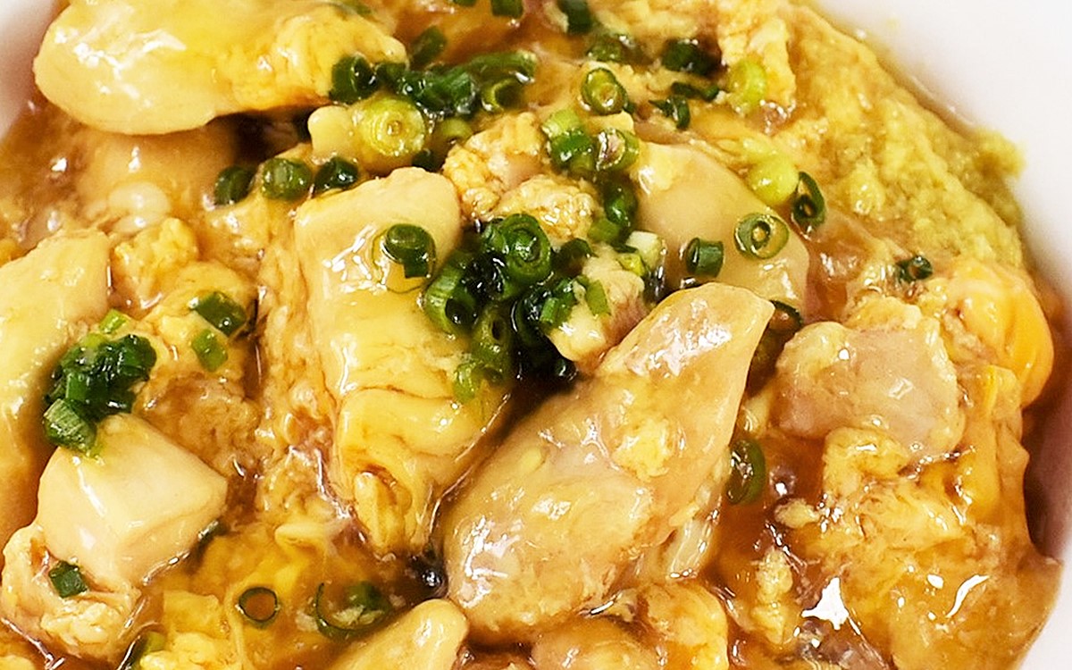そしてなんといっても注目すべきは、ゴロゴロと入った大粒のとり肉。柔らかいお肉には弾力があり、噛むたびにおいしさが溢れてくるのがとても魅力的です。そんなとり肉と和風出汁が効いたトロトロの餡は、もちろん相性バツグン。2つの具材のバランスはまさしく“黄金比”と言っても過言ではない……。柔らかくジューシーなとり肉とやや濃いめの味つけのおかげで、ご飯もあっという間に完食してしまいますよ。