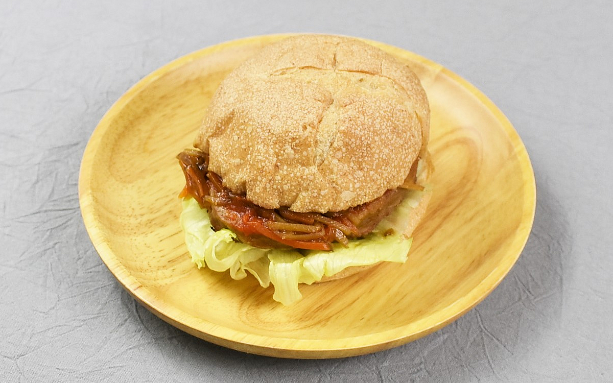 大豆ミートハンバーグやきんぴらごぼう、和風トマトソースなど、ハンバーガーにしては珍しい具材をはさみこんだ今回の一品。ひとくち食べた瞬間、ごぼうの風味が口いっぱいに広がりました。ごぼう×ハンバーガーなんて……と思ったそこのあなた。この組み合わせが意外と相性バツグンで、優しいお味の“和風バーガー”に仕上がっていますよ。