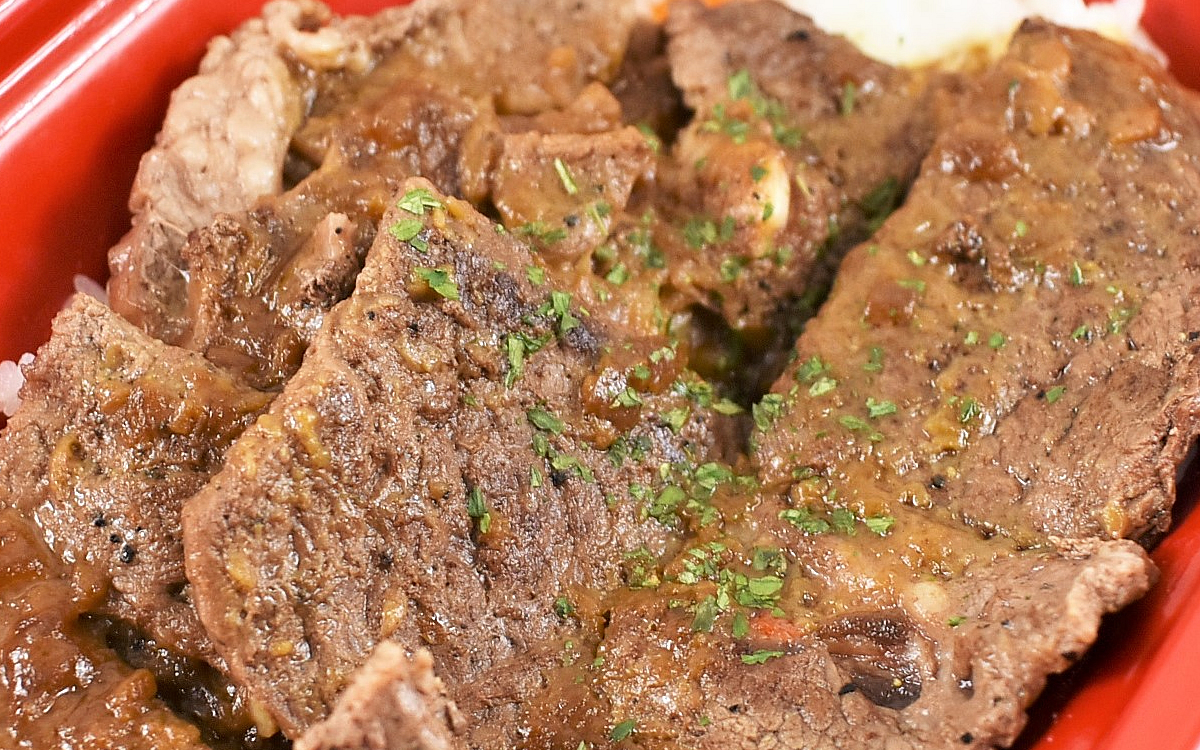 ●「選べる極旨ソースの牛ステーキ丼(洋風ガーリックソース)」(松屋)